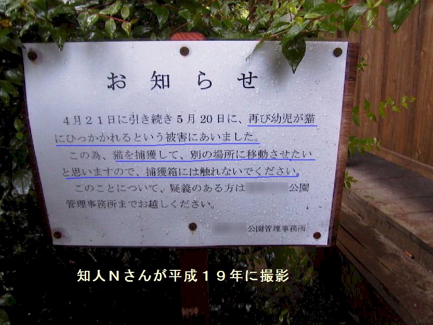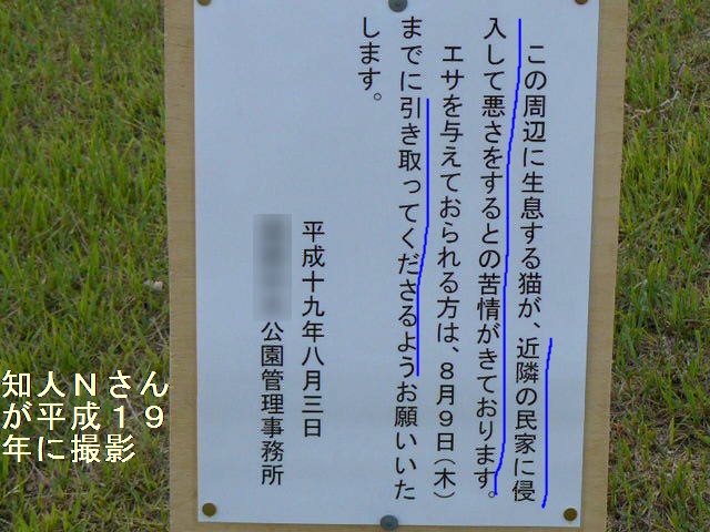 を得ず、勝手に公園内に看板を立てることも禁止されている。猫が地域住民に大きな迷惑をかけてい