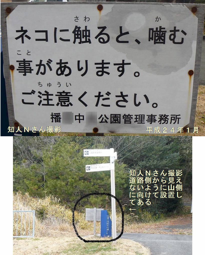 広域公園に設置してある猫えさやり禁止の違法看板.......................................................................................................................................................................