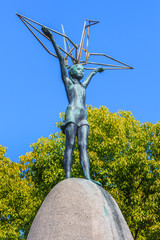 monument is a statue of a girl, Sadako Sasaki holding a paper crane.