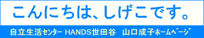 こんにちは、山口成子です。今日はこのページにようこそ。ごゆっくりとお楽しみ下さい。まだ不完全ですが、これからどんどん付け加えるつもりです。このたびHANDS世田谷でホームページを開設しました(1997年)。ご覧になりたい方はこちらをクリックして下さい。
