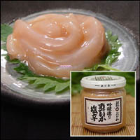 真いかを1本まるごと細切りにし塩分を控えめにし、真いか本来のまろやかな甘さを引き出しました。 熟成方法にも一手間加え深みのある味の【無着色の塩辛】です。